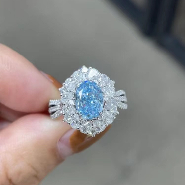 مختبر مجوهرات الماس الأزرق البيضاوي قص خاتم الخطوبة خاتم الزواج خواتم الماس الفاخرة