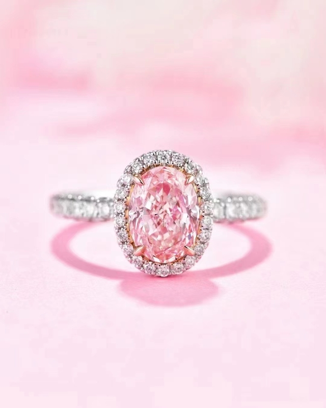 خاتم الخطوبة الماسي الوردي 1.97CT Lab Grown Diamond Jewelry Design البيضاوي قطع المجوهرات الإنتاج