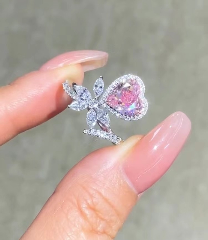 2التصوير المقطعي"خاتم خطوبة "القلوب الوردية الماسية الكلاسيكية خاتم الزواج