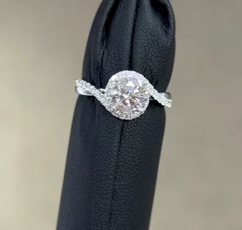 الماس المزروع في المختبر المجوهرات اللون الأبيض الدائري حلقة الخطوبة حلقة الزفاف حلقة الماس الدائري للحفلات والذكرى
